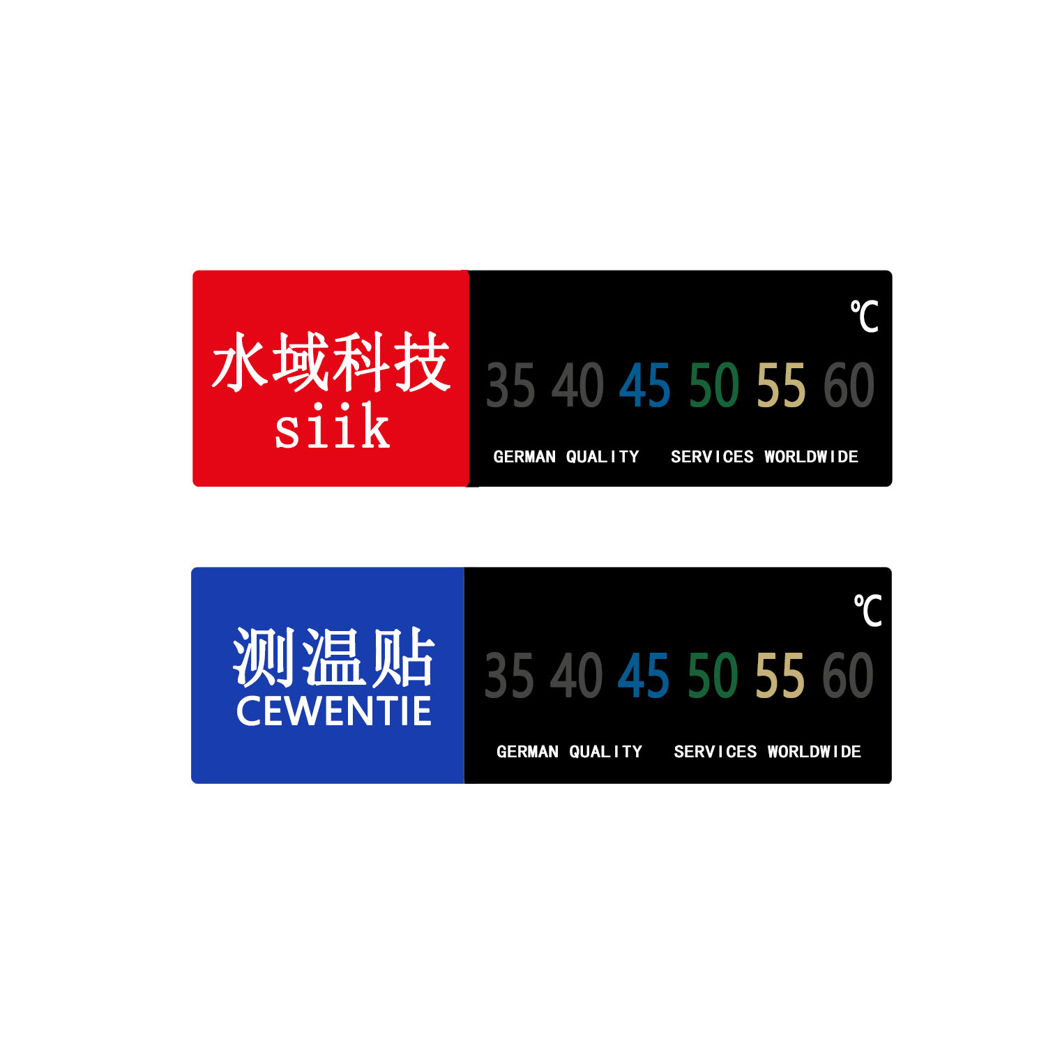 此款温度贴测温范围为20℃-60℃ ,温度、外形、尺寸均可定制(现有多种尺寸),背胶设计。欢迎来样来稿印LOGO!